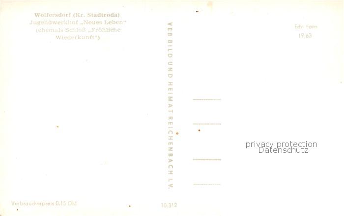 73832300 Wolfersdorf Trockenborn-Wolfersdorf Jugendwerkhof Neues Leben Ehem Schloss Froehliche Wiederkunft postalisch nicht gelaufen Erhaltung siehe scans [FriedD77] KatCode: 11110016074102