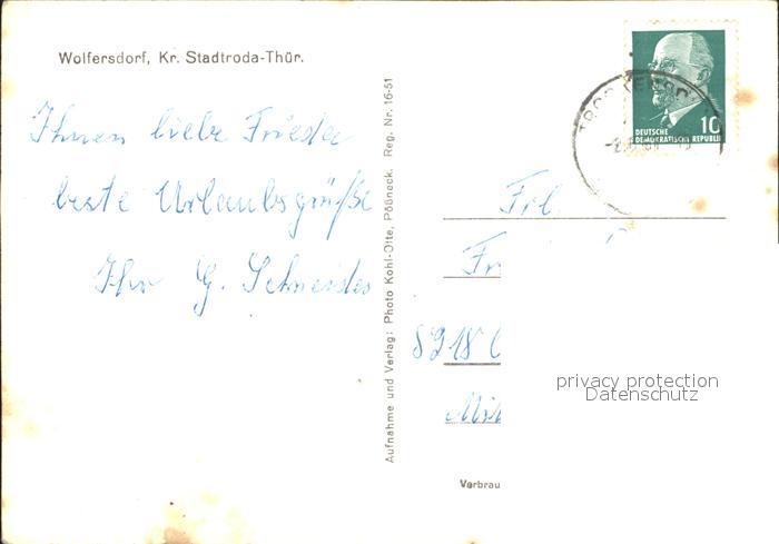 72366613 alte Postkarte Wolfersdorf Trockenborn-Wolfersdorf Ortsansicht postalisch gelaufen Erhaltung siehe scans KatCode: 11110016074102