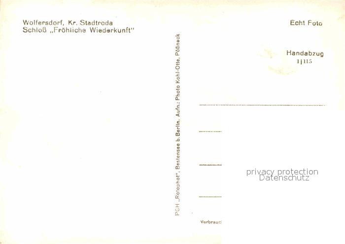 72881357 Wolfersdorf Trockenborn-Wolfersdorf Schloss Froehliche Wiederkunft postalisch nicht gelaufen Erhaltung siehe scans [FriedD77] KatCode: 11110016074102