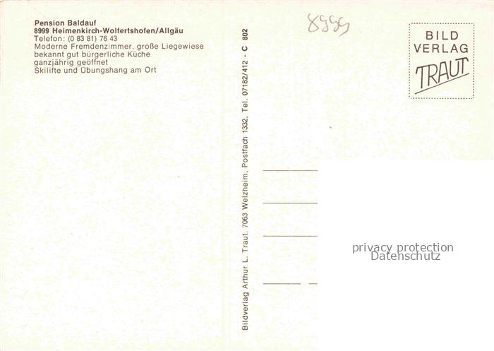 Wolfertshofen Heimenkirch Pension Baldauf postalisch nicht gelaufen Erhaltung siehe scans [FriedD77] Frie Katcode 11110009776114