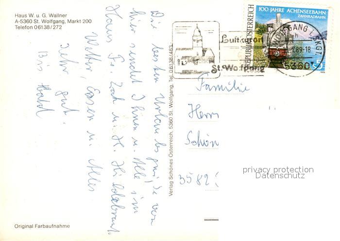 73076156 alte Postkarte Wolfgang Salzkammergut St Haus Wallner Segelboot postalisch gelaufen Erhaltung siehe scans [KathaD81] KatCode: 11390315040717
