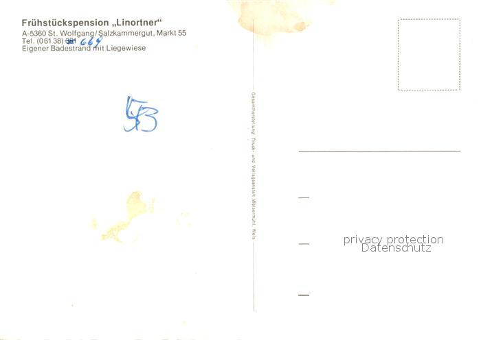 73079228 Wolfgang Salzkammergut St Pension Linortner postalisch nicht gelaufen Erhaltung siehe scans [KathaD81] KatCode: 11390315040717