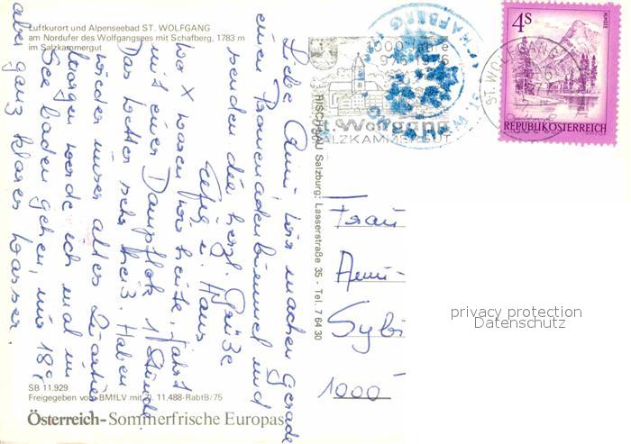 72692365 alte Postkarte Wolfgang Salzkammergut St Wolfgangsee Schafberg postalisch gelaufen Erhaltung siehe scans [KathaD79] KatCode: 11390315040717
