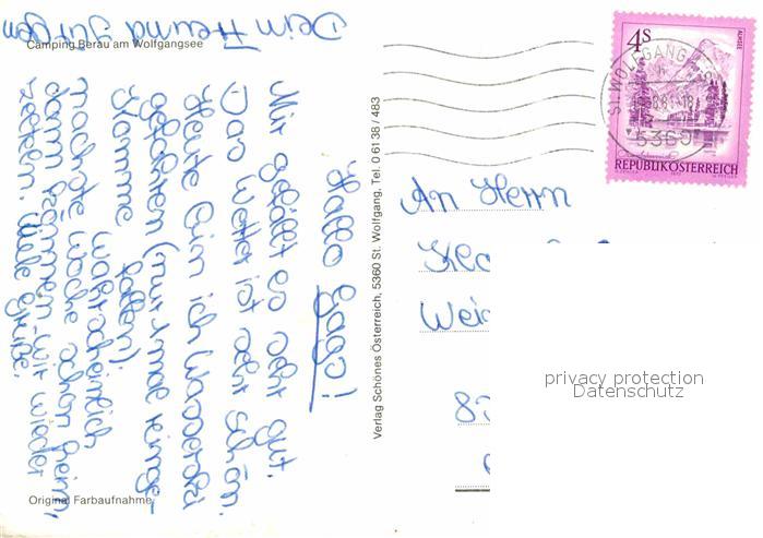 72694334 alte Postkarte Wolfgangsee Camping Berau Luftaufnahme postalisch gelaufen Erhaltung siehe scans [KathaD79] KatCode: 11390