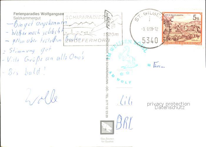 72306691 alte Postkarte Wolfgangsee Fliegeraufnahme postalisch gelaufen Erhaltung siehe scans KatCode: 11390