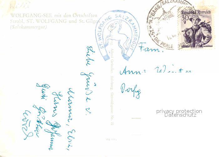 72849490 alte Postkarte Wolfgangsee Fliegeraufnahme Panorama postalisch gelaufen Erhaltung siehe scans [KathaD81] KatCode: 11390