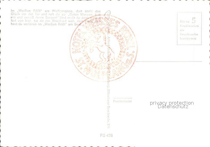 71822274 Wolfgangsee Hotel Weisses Roessl postalisch nicht gelaufen Erhaltung siehe scans KatCode: 11390
