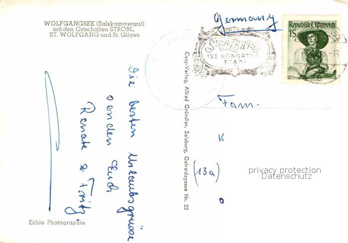 72811838 alte Postkarte Wolfgangsee mit Strobl St Wolfgang und St Gilgen postalisch gelaufen Erhaltung siehe scans [WerneD78] KatCode: 11390
