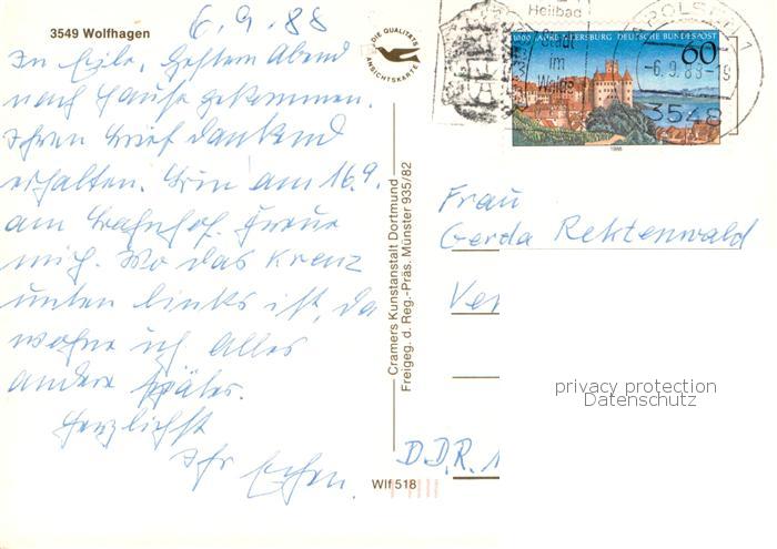 73776696 alte Postkarte Wolfhagen Fliegeraufnahme postalisch gelaufen Erhaltung siehe scans [WerneD78] KatCode: 11110006633028
