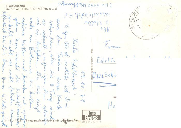 13940812 alte Postkarte Wolfhalden AR Fliegeraufnahme postalisch gelaufen Erhaltung siehe scans [WerneD78] KatCode: 11470020070588