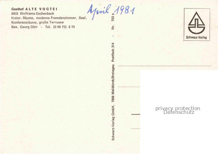 74150911 Wolframs-Eschenbach Alte-Vogtei Gasthof Fachwerkhaus Historische-Raeume Gaststaette Mittelalterhaus Mehrbildkarte postalisch nicht gelaufen Erhaltung siehe scans [Karloger] KatCode: 11110009571229
