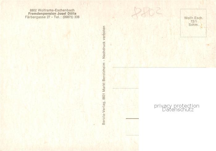 73762748 Wolframs-Eschenbach Fremdenpension Josef Doeller Gaestezimmer Torbogen Bootspartie postalisch nicht gelaufen Erhaltung siehe scans [FriedD77] KatCode: 11110009571229