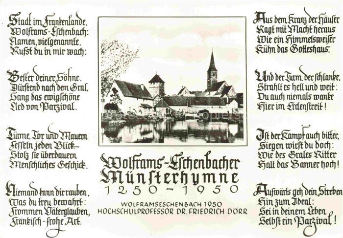 74093841 Wolframs-Eschenbach Ortsansicht mit Kirche Muensterhymne postalisch nicht gelaufen Erhaltung siehe scans [WerneD78] KatCode: 11110009571229