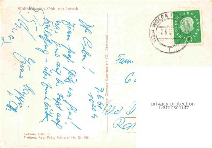 74044274 alte Postkarte Wolfratshausen Bad Toelz Bayern Fliegeraufnahme mit Loisach postalisch gelaufen Erhaltung siehe scans [WerneD78] KatCode: 11110009173147