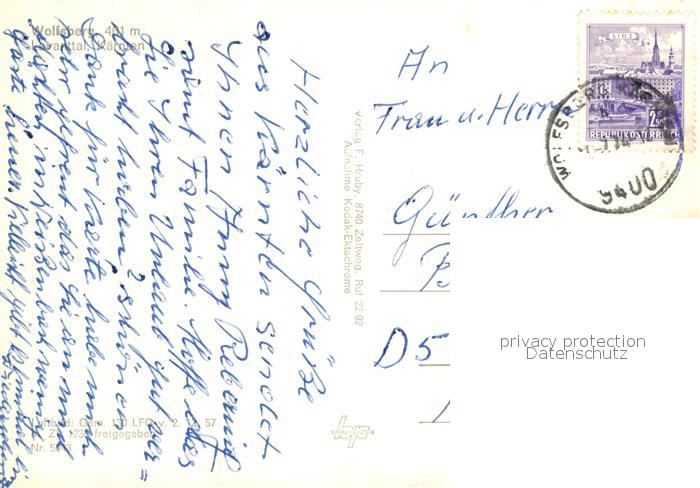 73034265 alte Postkarte Wolfsberg Kaernten Lavanttal Fliegeraufnahme postalisch gelaufen Erhaltung siehe scans [PaolaD17] KatCode: 11390213020923