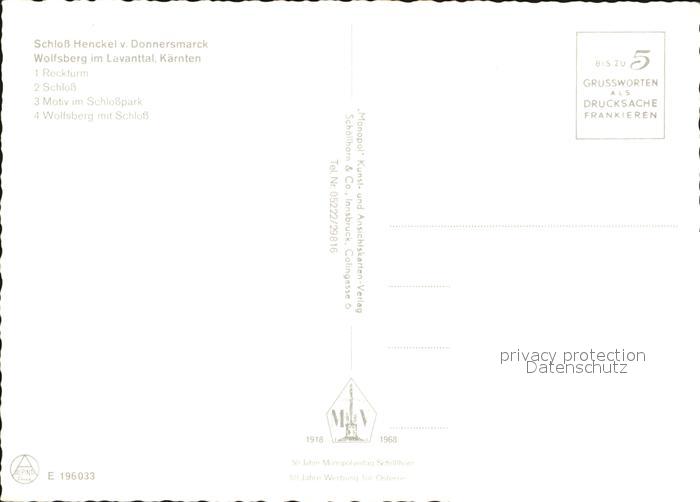 72411621 Wolfsberg Kaernten Schloss Henckel von Donnersmark Reckturm Schlosspark Stadtblick mit Schloss postalisch nicht gelaufen Erhaltung siehe scans KatCode: 11390213020923