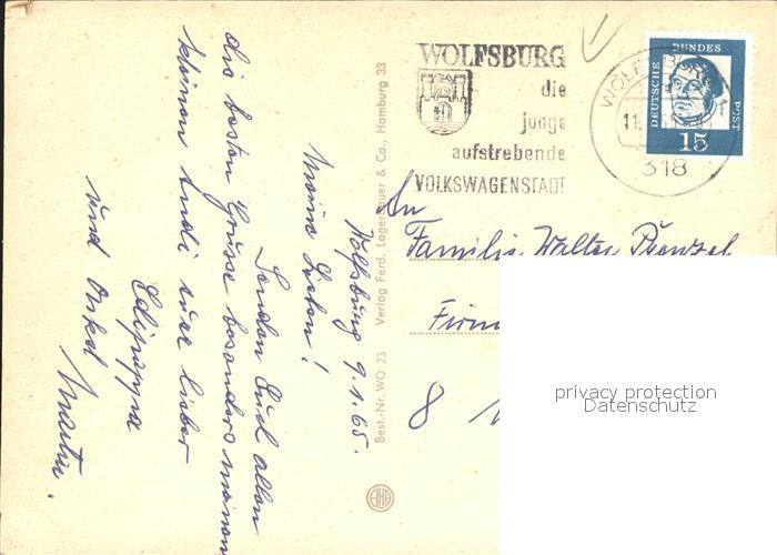72131452 alte Postkarte Wolfsburg Frachter VW Werk Ortsansichten Fontaene Parkplatz postalisch gelaufen KatCode: 11110003103000