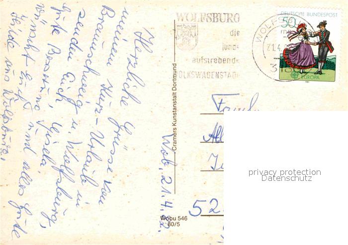 72715811 alte Postkarte Wolfsburg Fussgaengerzone Porschestrasse Wasserspiele Schloss VW Werk postalisch gelaufen Erhaltung siehe scans [KathaD79] KatCode: 11110003103000