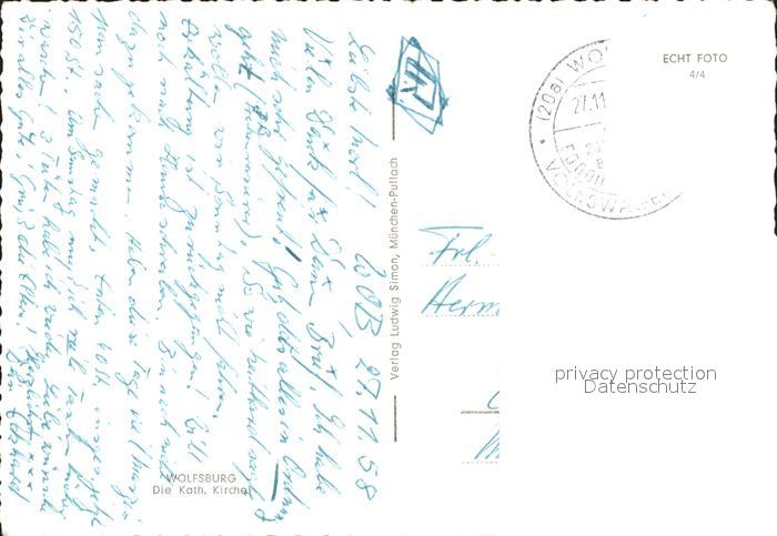 72032349 alte Postkarte Wolfsburg Katholische Kirche postalisch gelaufen Erhaltung siehe scans KatCode: 11110003103000