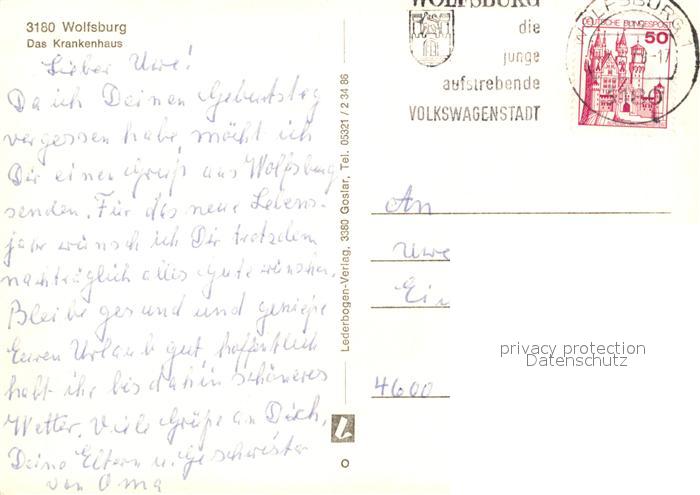 73062400 alte Postkarte Wolfsburg Krankenhaus postalisch gelaufen Erhaltung siehe scans [KathaD81] KatCode: 11110003103000