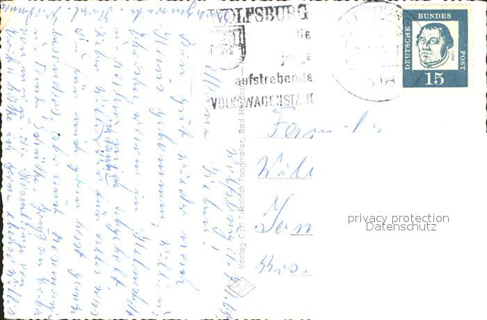 72296992 alte Postkarte Wolfsburg Kreissparkasse Schwimmbad Schloss Ev Kirche postalisch gelaufen Erhaltung siehe scans KatCode: 11110003103000