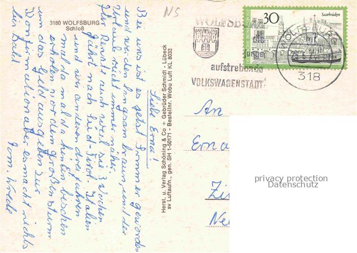 74075363 WOLFSBURG Niedersachsen Schloss Fliegeraufnahme postalisch gelaufen Erhaltung siehe scans [WerneD78] alte Postkarte Wern Katcode 11110003103000