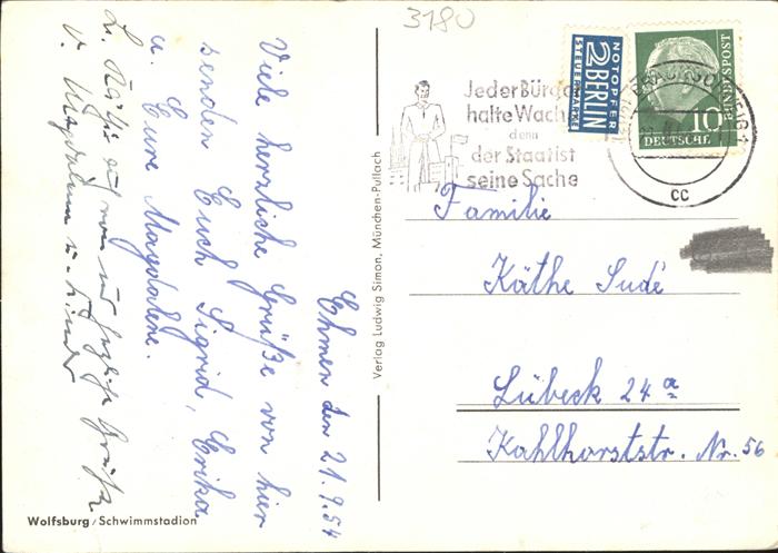 41307430 WOLFSBURG Niedersachsen Schwimmstadion postalisch gelaufen gute Erhaltung Alte Ansichtskarte Postkarte alte Postkarte hz_W Katcode 11110003103000