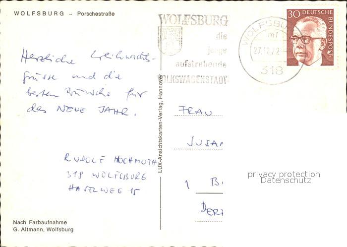 72105025 alte Postkarte Wolfsburg Porschestrasse bei Nacht postalisch gelaufen Erhaltung siehe scans KatCode: 11110003103000