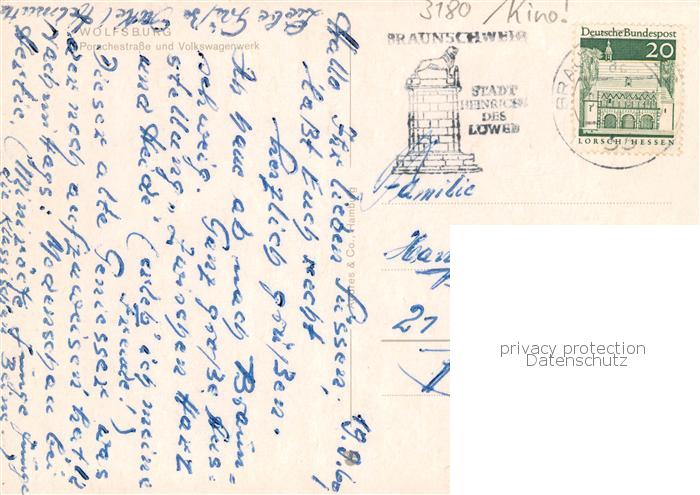 73861384 alte Postkarte Wolfsburg Porschestrasse und Volkswagenwerk Industrie postalisch gelaufen Erhaltung siehe scans [FriedD77] KatCode: 11110003103000