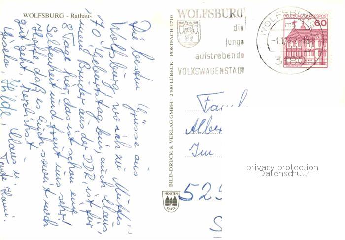 72715810 alte Postkarte Wolfsburg Rathaus postalisch gelaufen Erhaltung siehe scans [KathaD79] KatCode: 11110003103000