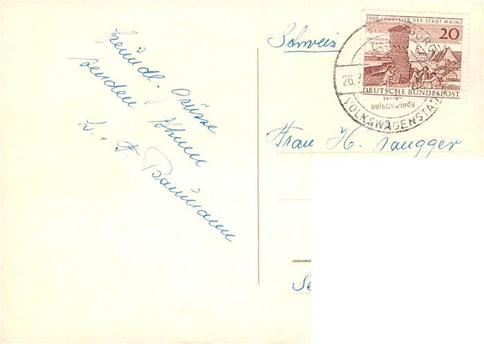 73887569 alte Postkarte Wolfsburg St Josephskirche Schloss Christuskirche VW Werk Hochhaus am Berliner Ring postalisch gelaufen Erhaltung siehe scans [FriedD77] KatCode: 11110003103000
