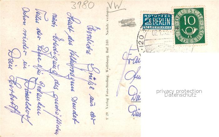 33702113 alte Postkarte Wolfsburg Volkswagenwerk postalisch gelaufen Erhaltung siehe scans [WerneD78] KatCode: 11110003103000