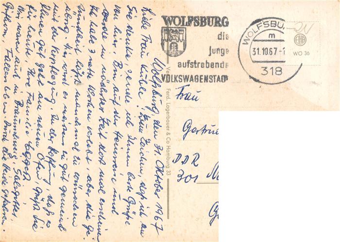 73891869 alte Postkarte Wolfsburg VW Stadt Teilansichten Schwimmbad Schloss Siedlung postalisch gelaufen Erhaltung siehe scans [WerneD78] KatCode: 11110003103000