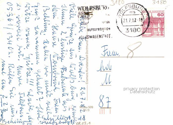 72914923 alte Postkarte Wolfsburg VW Werk Industrie Bahnhofspassage Fussgaengerzone Rathaus Betriebskrankenkasse Schloss postalisch gelaufen Erhaltung siehe scans [FriedD77] KatCode: 11110003103000
