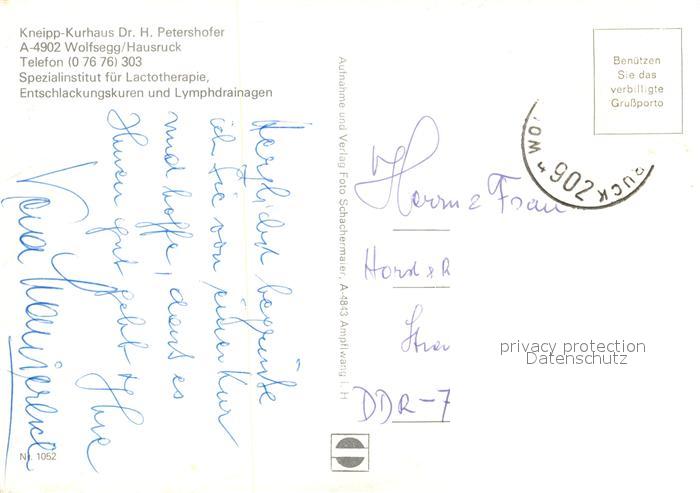 73363323 alte Postkarte Wolfsegg Hausruck Kneipp Kurhaus Dr. Petershofer postalisch gelaufen Erhaltung siehe scans [FriedD77] KatCode: 11390315041750
