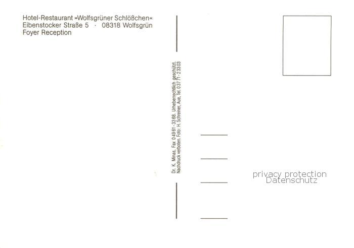 73837067 Wolfsgruen Eibenstock Hotel Restaurant Wolfsgruener Schloesschen Rezeption postalisch nicht gelaufen Erhaltung siehe scans [FriedD77] KatCode: 11110014191120