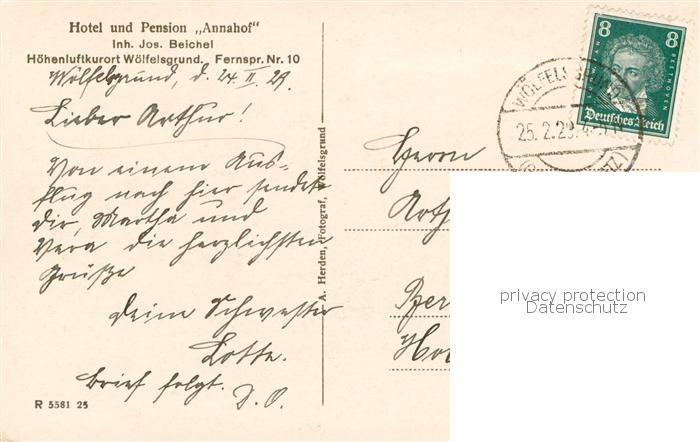 73806809 alte Postkarte Wolfsgrund Hotel Pension Annahof postalisch gelaufen Erhaltung siehe scans [FriedD77] KatCode: 11110014177070