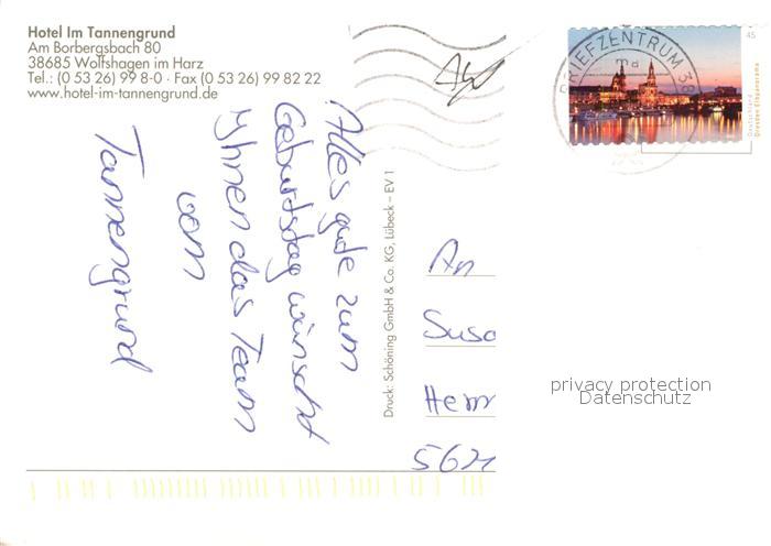 73543643 alte Postkarte Wolfshagen Harz Hotel Im Tannengrund Zimmer Terrasse Park postalisch gelaufen Erhaltung siehe scans [WerneD78] KatCode: 11110003153007