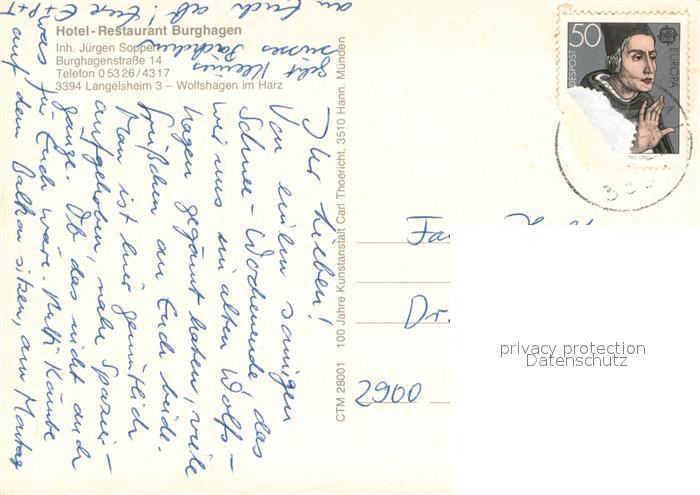 73651147 alte Postkarte Wolfshagen Harz Hotel Restaurant Burghagen postalisch gelaufen Erhaltung siehe scans [FriedD77] KatCode: 11110003153007