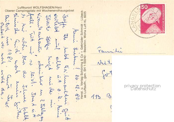 73635630 alte Postkarte Wolfshagen Harz Oberer Campingplatz mit Wochenendhausgebiet Fliegeraufnahme postalisch gelaufen Erhaltung siehe scans [WerneD78] KatCode: 11110003153007
