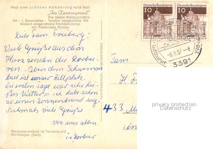 72951177 alte Postkarte Wolfshagen Harz Waldschwimmbad Tannengrund postalisch gelaufen Erhaltung siehe scans [PaolaD17] KatCode: 11110003153007