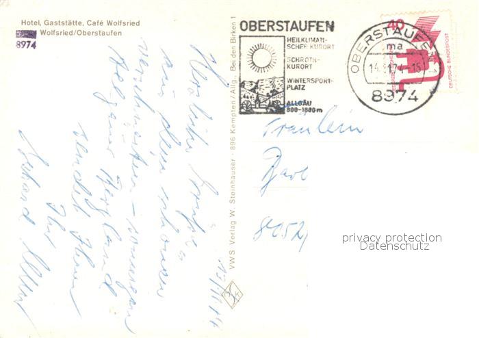 73803668 alte Postkarte Wolfsried Buflings Hotel Gaststaette Wolfsried Wintergarten Schwimmhalle Spielraeume Kegelbahn mit Bar Kamin und Tagungsraum postalisch gelaufen Erhaltung siehe scans [WerneD78] KatCode: 11110009780132