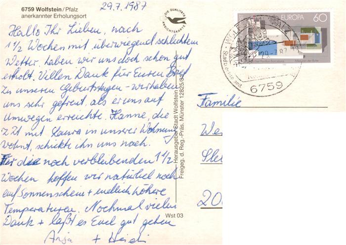 73947039 alte Postkarte Wolfstein Oberpfalz Fliegeraufnahme postalisch gelaufen Erhaltung siehe scans [FriedD77] KatCode: 11110009373147
