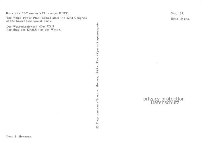 74042118 Wolga Volga Russia Wasserkraftwerk postalisch nicht gelaufen Erhaltung siehe scans [IrynaD87] KatCode: 11440