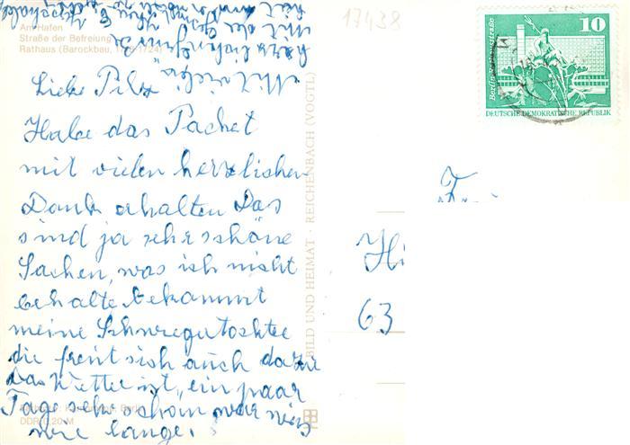 73905012 alte Postkarte Wolgast Mecklenburg-Vorpommern Am Hafen Strasse der Befreiung Rathaus postalisch gelaufen Erhaltung siehe scans [WerneD78] KatCode: 11110013059101