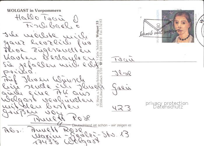 72331456 alte Postkarte Wolgast Mecklenburg-Vorpommern Cafe Kirche Hafen postalisch gelaufen Erhaltung siehe scans KatCode: 11110013059101