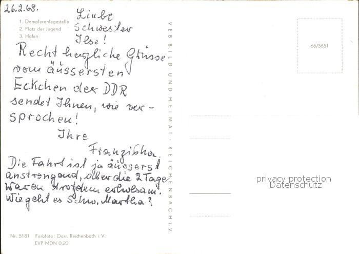 71998433 Wolgast Mecklenburg-Vorpommern Dampferanlegestelle Platz Jugend Hafen postalisch nicht gelaufen Erhaltung siehe scans KatCode: 11110013059101