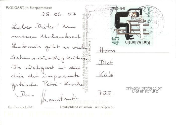 72331448 alte Postkarte Wolgast Mecklenburg-Vorpommern Fliegeraufnahme postalisch gelaufen Erhaltung siehe scans KatCode: 11110013059101