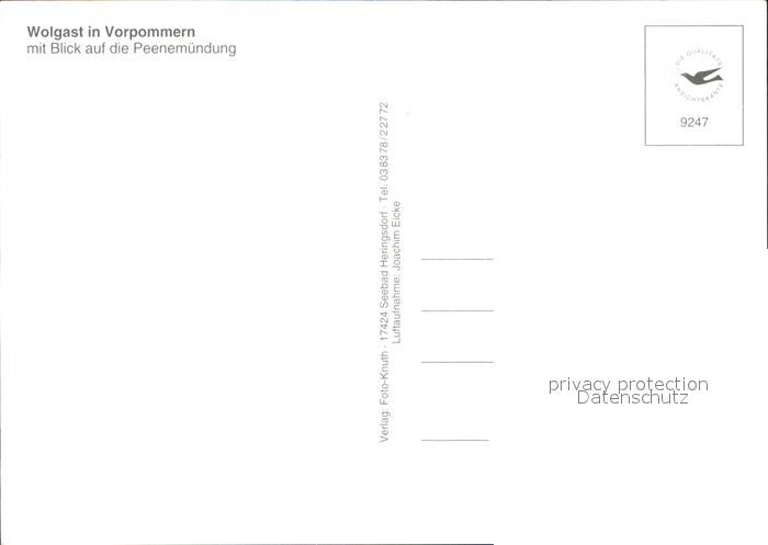 72585766 Wolgast Mecklenburg-Vorpommern Fliegeraufnahme mit Peenemuendung postalisch nicht gelaufen Erhaltung siehe scans [LiesaD40] KatCode: 11110013059101