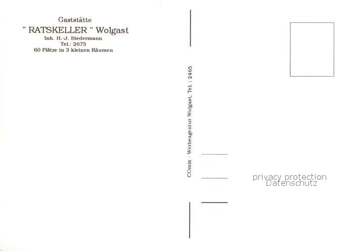 73209436 Wolgast Mecklenburg-Vorpommern Gaststaette Ratskeller Restaurant Festtafel Wappen postalisch nicht gelaufen Erhaltung siehe scans [FriedD77] KatCode: 11110013059101